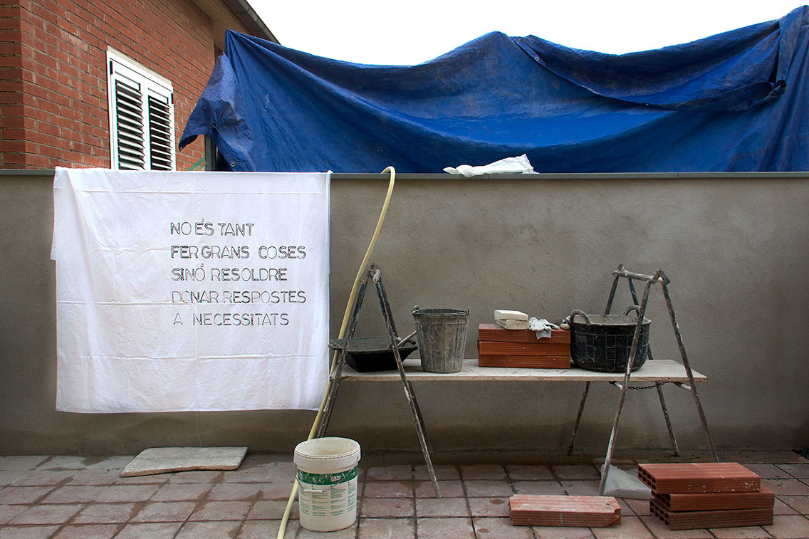 En motiu del Festival FESTUS (2022), Space Reading vaig conversar amb dones arquitectes per a intervenir 5 façanes amb 5 frases recollides en el procés d'investigació impreses en llençols. La roba estesa, com un guió que retrobem en caminar la ciutat, ens parla de com podrien ser les ciutats si les dones haguéssin pogut participar en el disseny i construcció en el passat, de com podrien ser les cases, ciutats i espais socials.